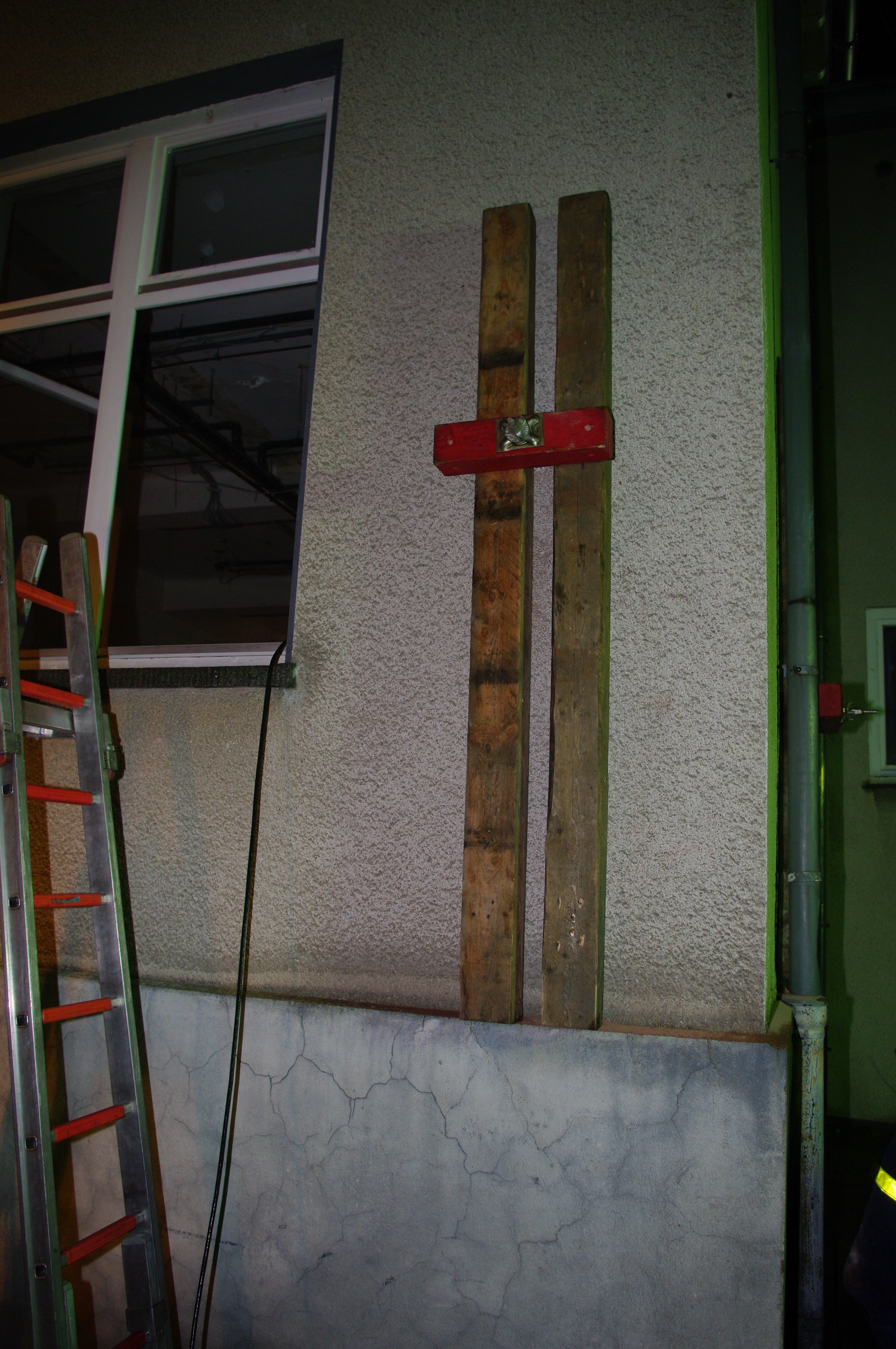 Mit 5 Großfahrzeugen trafen die THW-Kräfte am Abend bei starkem Regen an der "Einsatzstelle" ein. Eine bereits entkernte und zum Abriss vorgesehene ehemalige Schule in Kreuztal-Buschhütten stand kurzfristig als Übungsobjekt zur Verfügung. Unter realitätsnahen Bedingungen konnten hier Wand- und Deckendurchbrüche erstellt werden.